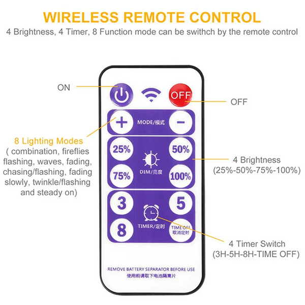 Create an enchanting outdoor mood with these 138 Solar Star Moon String Lights. Powered by the sun, the 8 available lighting modes, adjustable brightness and remote control make it easy to customize the ambience to suit any occasion.