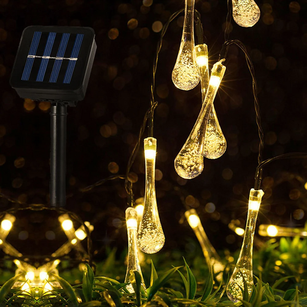 The Waterproof Fairy Garden Garland Water Drop Bubble Solar LED Lights are a captivating outdoor lighting solution that combines the enchanting beauty of fairy lights with eco-friendly solar power. These lights are designed to add a magical touch to any garden, patio, or outdoor space, creating an atmosphere of whimsy and charm. Here's a detailed product description: